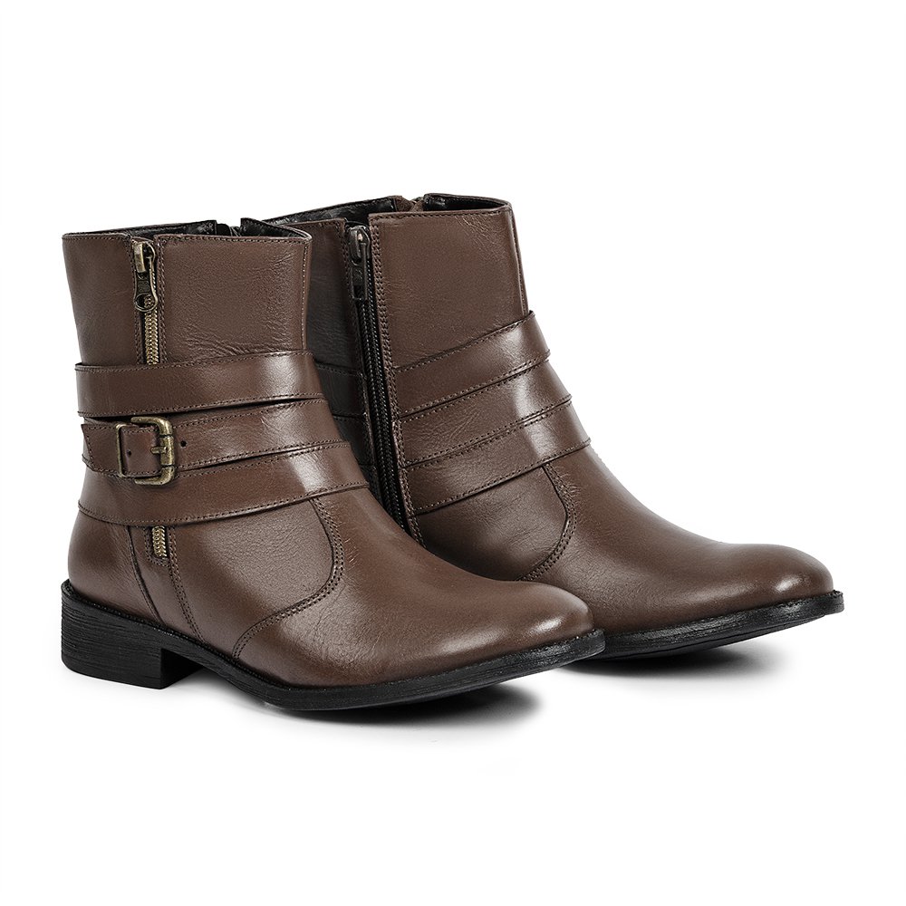 Bota/Coturno Feminina Kader Woman Couro Pinhão