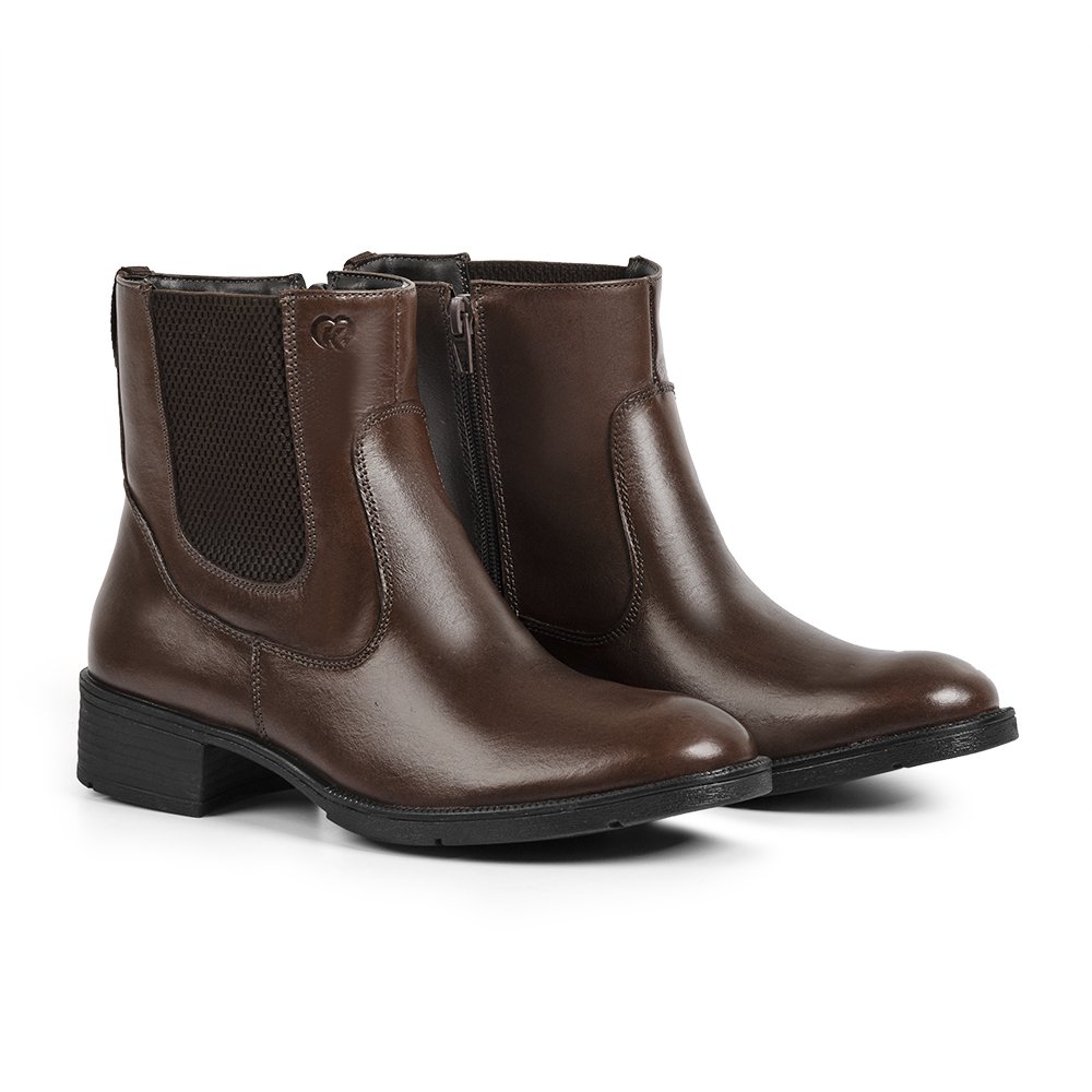 Bota Feminina Coturno Cano Curto Couro Chocolate