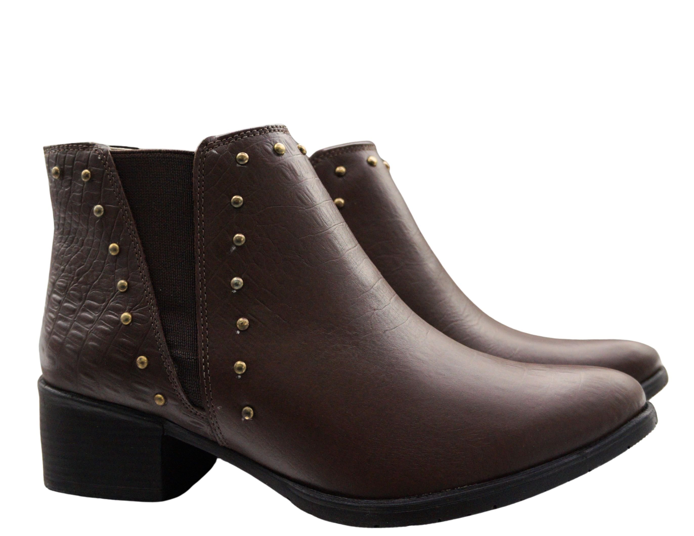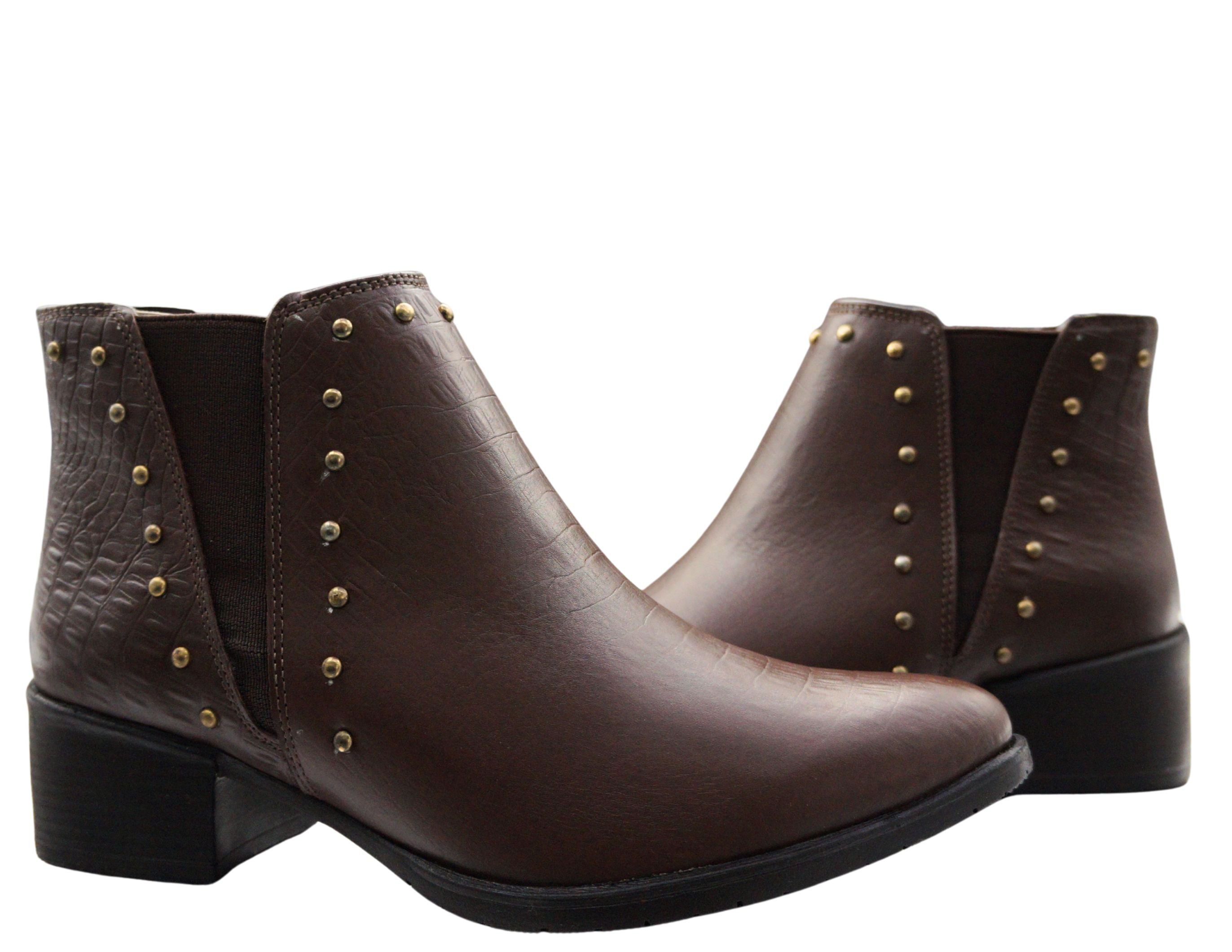 Estilo, conforto e praticidade em um só modelo. Confeccionada em couro legítimo na cor Croco chocolate, essa bota é puro charme e personalidade. Possui elástico nas laterais, que facilita o calce e garante ajuste perfeito ao pé. Os detalhes em tachas douradas acrescentam um toque moderno e elegante, enquanto o salto médio oferece conforto e estabilidade para o uso diário. O bico levemente fino completa o visual sofisticado e versátil, ideal para compor produções casuais ou mais arrumadas.